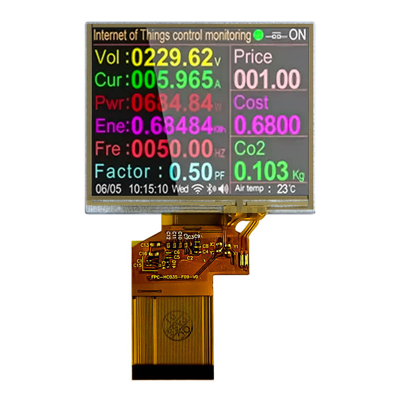 HC035TB35032-F09V.1 es una pantalla táctil resistiva de 3,5 pulgadas con modo de visualización TN que tiene sus propias ventajas en términos de alta precisión y respuesta rápida.Es adecuado para algunas aplicaciones que requieren una alta precisión y velocidad de respuestaEsta pantalla tiene una resolución de 320*240 píxeles.luminosidad de 400 nits y proporción de contraste de 500:1, y estas propiedades le permiten tener un mejor rendimiento en efectos de visualización.Su temperatura de funcionamiento de -20°C a 70°C hace posible que esta pantalla funcione en ambientes adversos y su interfaz de 54 pines RGB proporciona una transmisión de datos eficienteAdemás, la pantalla tiene una dimensión de contorno de 76.84mm*63.84mm*4.36mm y un área activa de 70.08*52.56mm, lo que puede brindar una experiencia visual de alta calidad a los usuarios.
